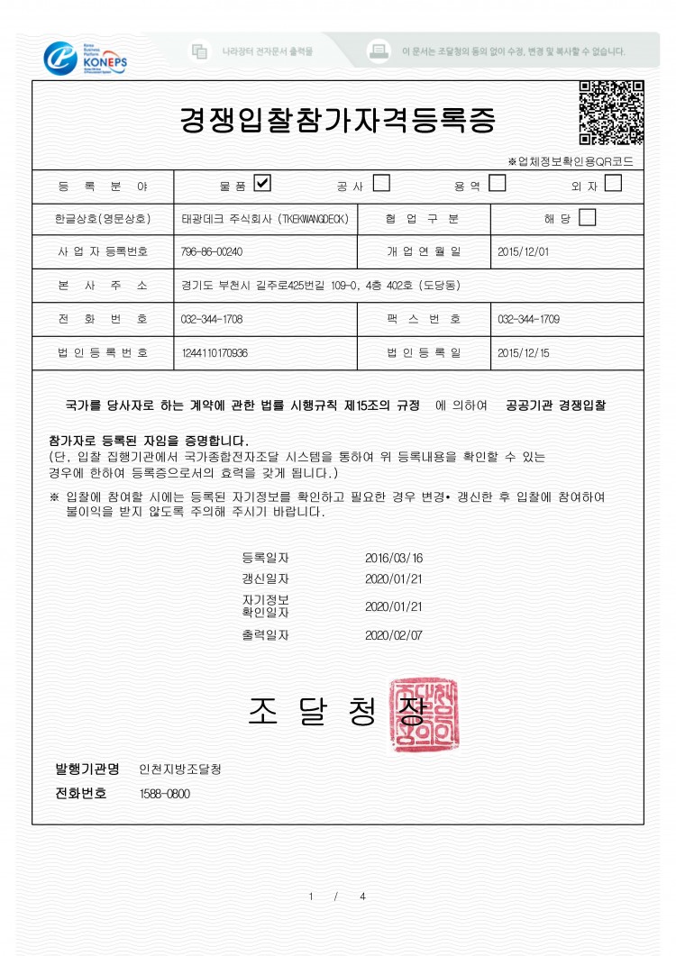 태광데크 경쟁입찰등록증